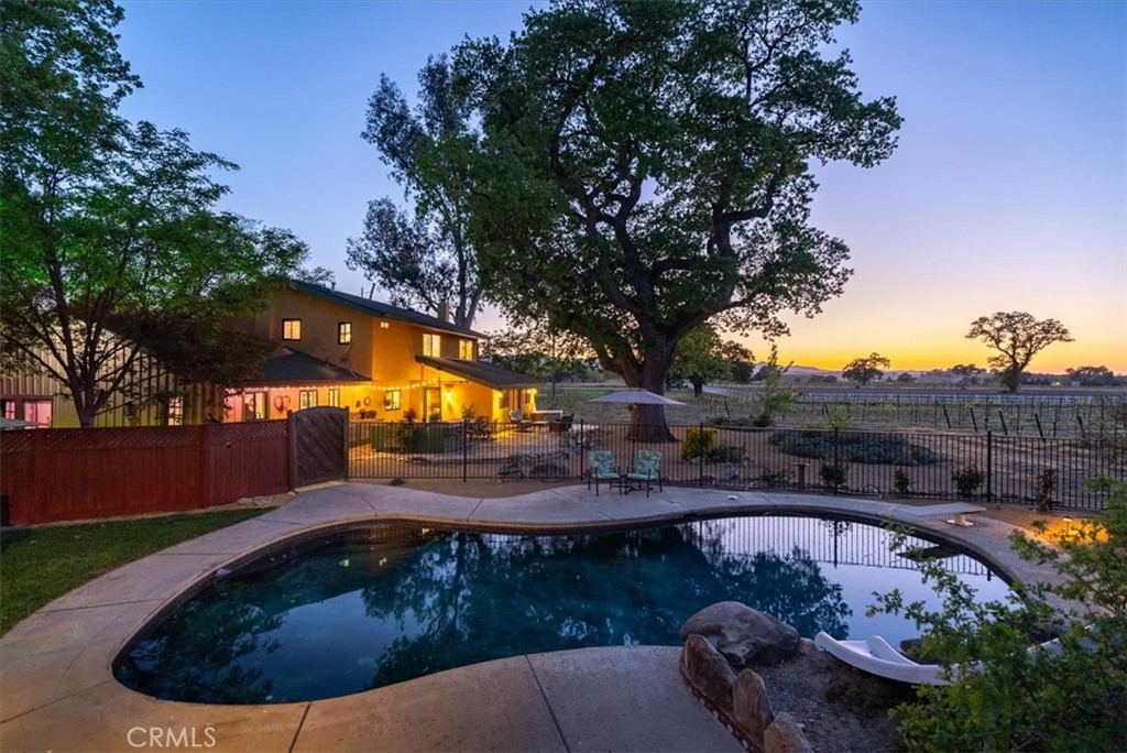 Experience country living just seven minutes from downtown Paso. Set in the Estrella District of the Paso Robles, this 7.56+- acre estate offers a rare blend of privacy, potential, and laid-back luxury. A scenic driveway leads to the spacious 2,843+- sq. ft. residence where you'll find a light-filled layout with three upstairs bedrooms, 2.5 bathrooms, a dedicated office/den, formal living room, wine cellar, and more. The open-concept kitchen, dining, and living areas flow seamlessly into a resort-style backyard retreat featuring a granite flagstone patio, built-in outdoor kitchen, spa, and pool with slide--ideal for entertaining or everyday enjoyment. Framed by mature landscaping, the outdoor space is anchored by a striking grandfather oak. The home's classic structure offers room to refresh and personalize, making it an inviting canvas for your vision.